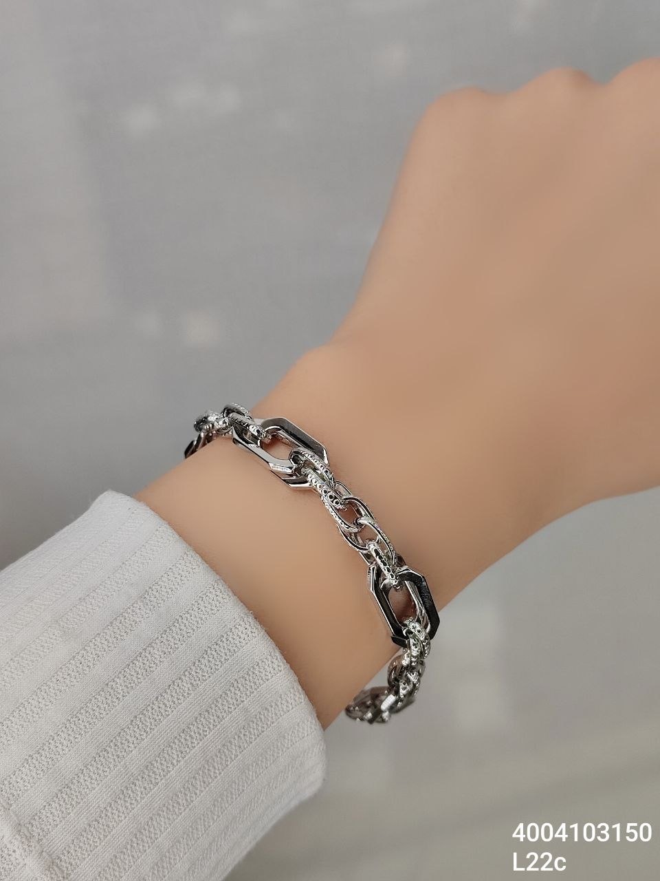 دستبند مدل زنجیری نامنظم به هم پیوسته نقره ای مارک ژوپینگ 4004103150